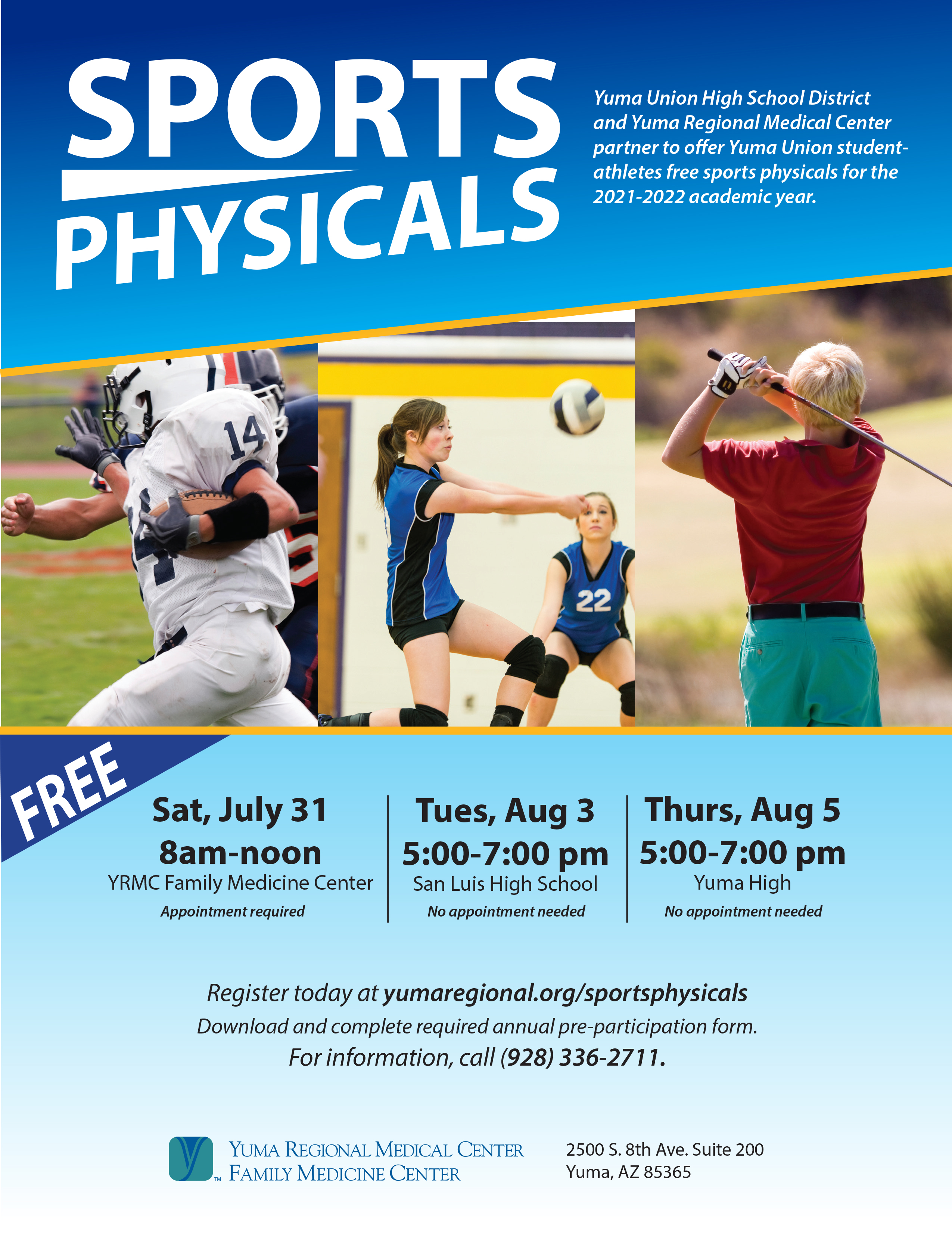 Yuma Union High School District On Twitter Athletes All Participants In Athletic Programs Require A Physical Exam Before They Are Cleared To Play If You Haven T Taken Yours Yet Yrmc Is Offering